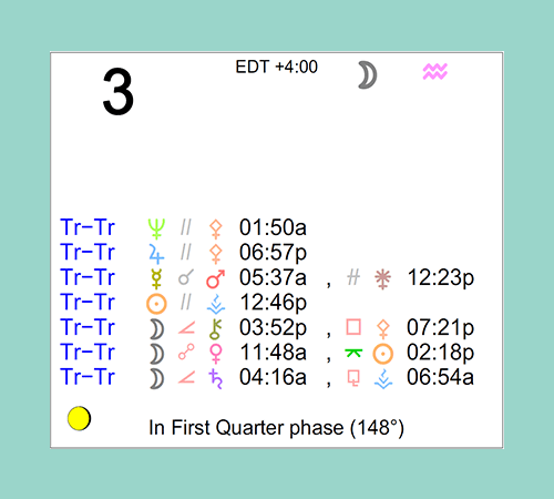 The following aspects (major only) and positions are at noon (EDT) on September 3rd: