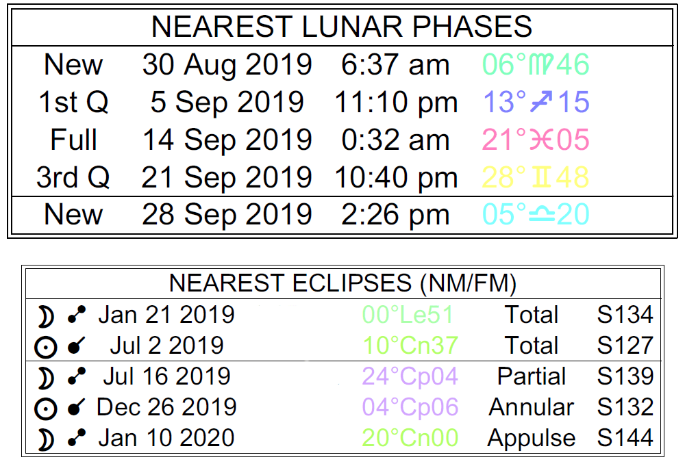 - The New Moon occurred on August 30th in the sign of Virgo, and the First Quarter Moon will occur tomorrow.