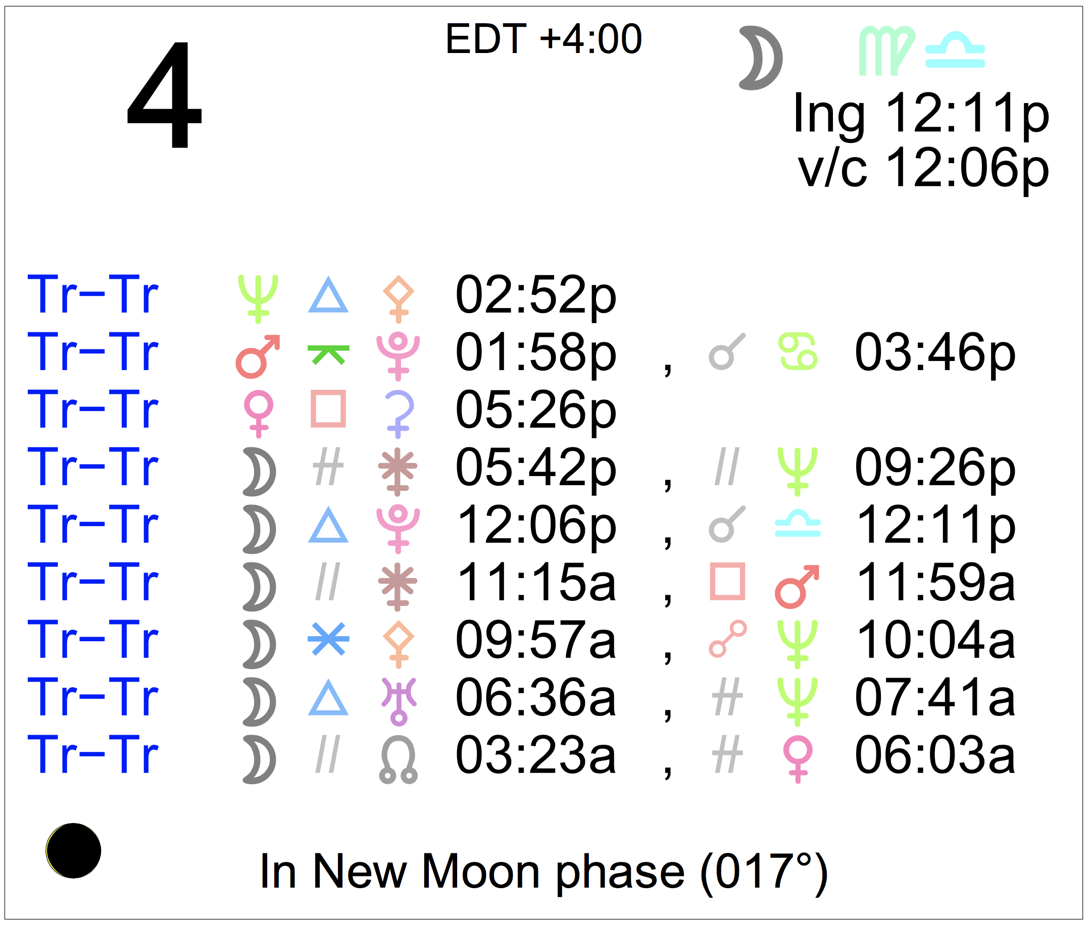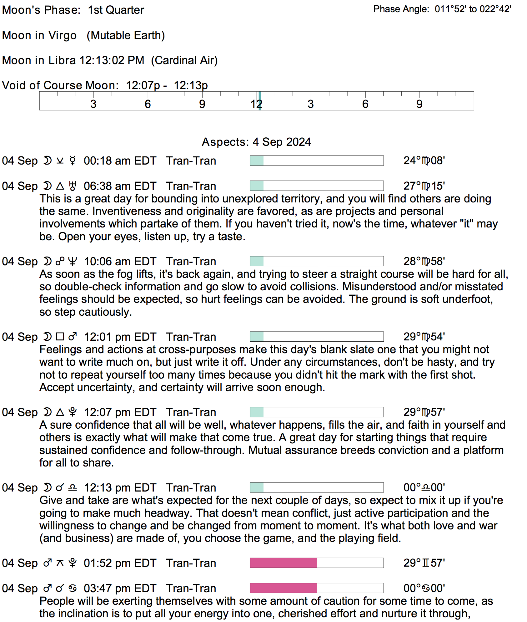 - A short void Moon period occurs from 12:06 PM to 12:11 PM today.