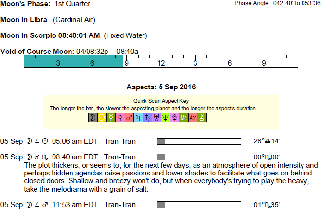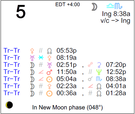 The following aspects (major only) and positions are at noon (EDT) on September 5th: