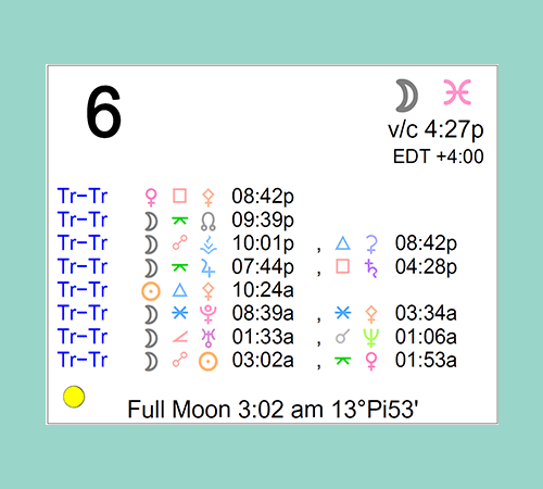 - The Full Moon occurs today at 3:02 AM in the sign of Pisces.