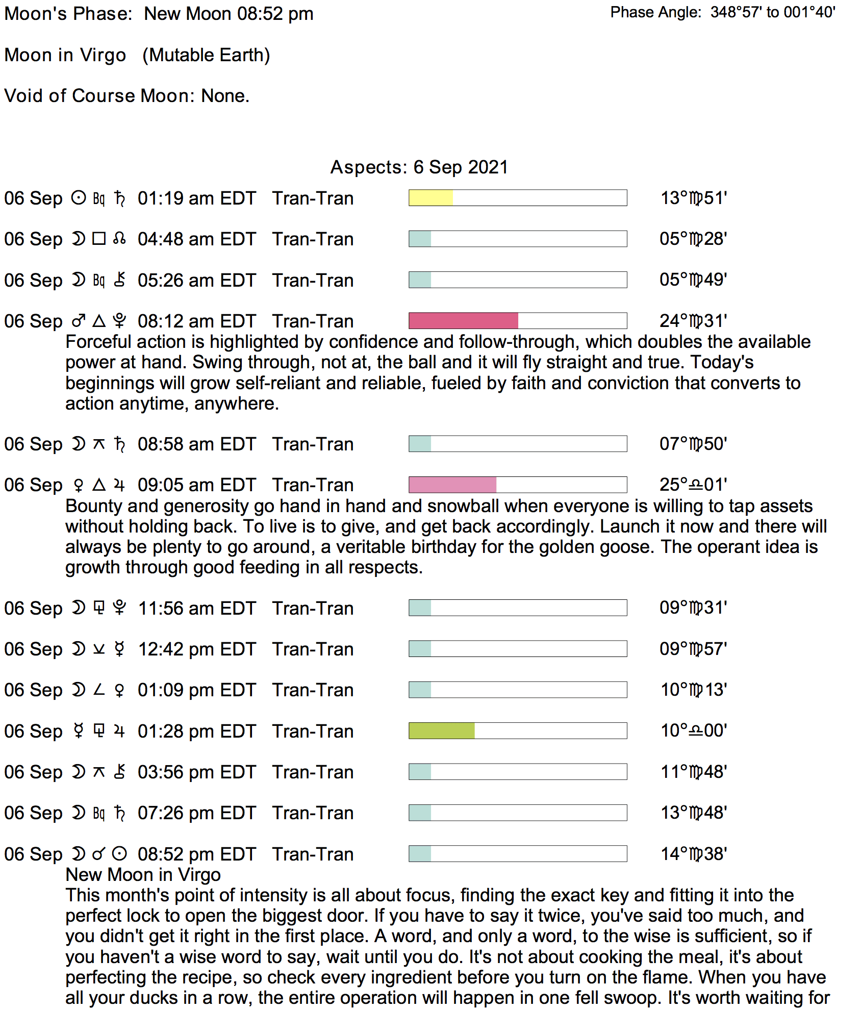 - A New Moon occurs today at 8:51 PM in the sign of Virgo.