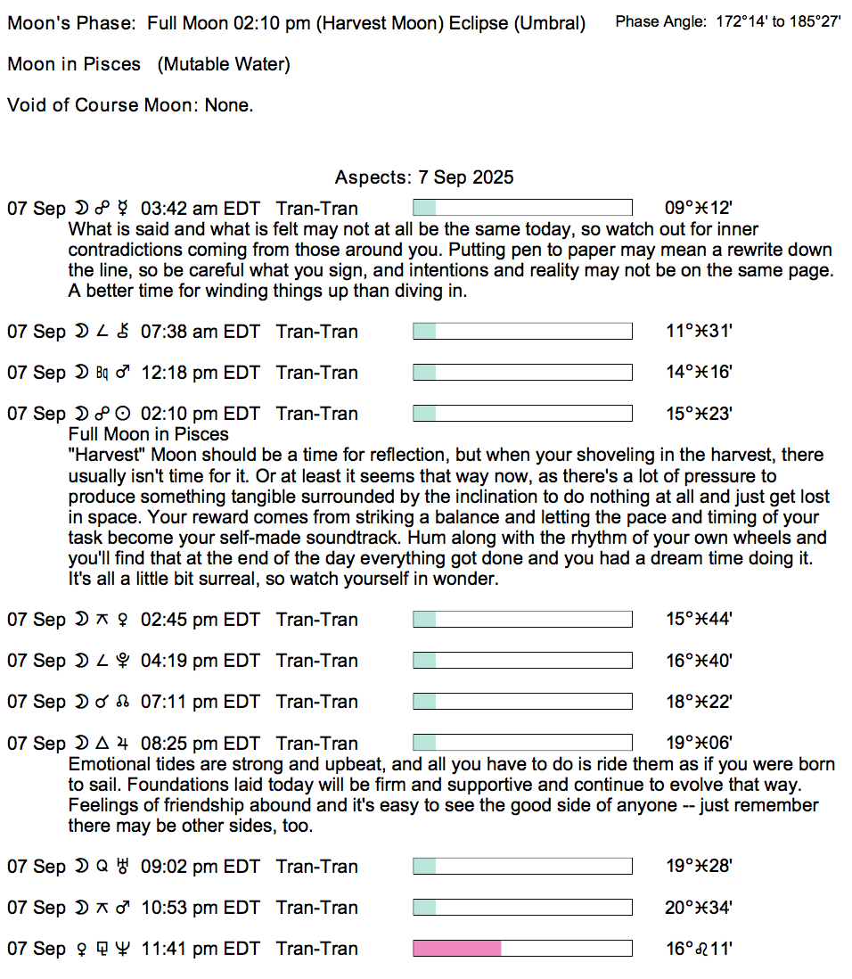 - The Full Moon Lunar Eclipse occurs today at 2:08 PM in the sign of Pisces.