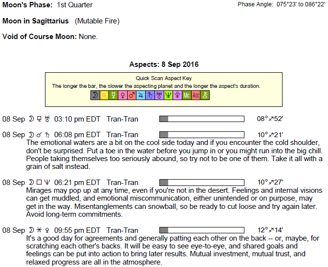The following aspects (major only) and positions are at noon (EDT) on September 8th: