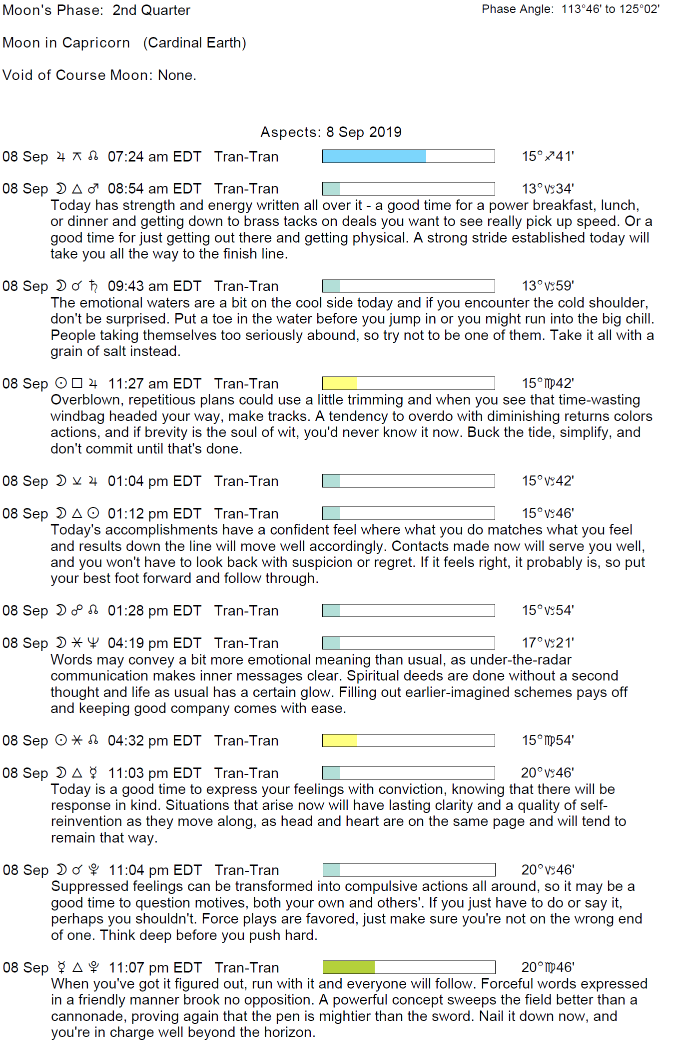If you’re astrologically inclined and interested in the details of the Astrology of today, here are some of the factors considered in the forecasts: