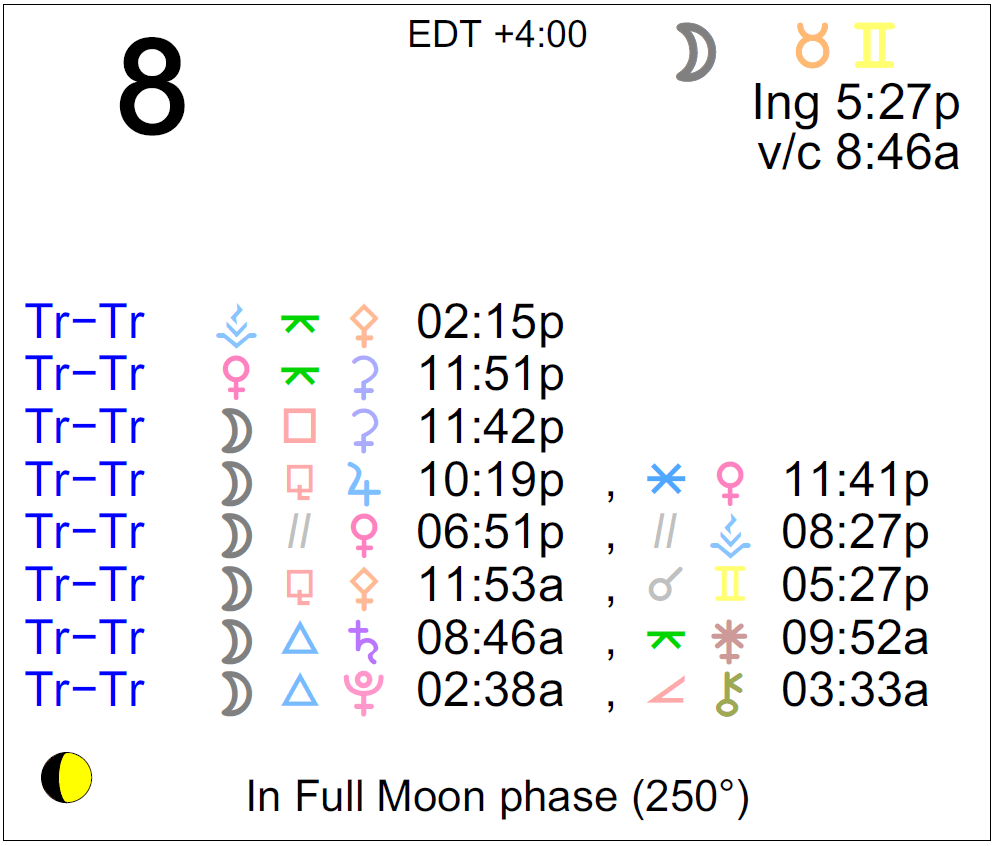 - A void Moon occurs from 8:46 AM to 5:27 PM.