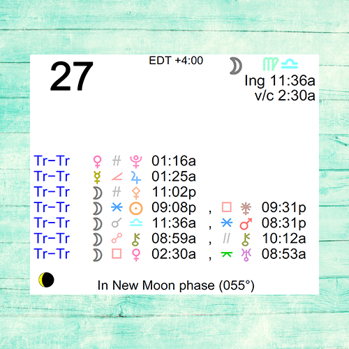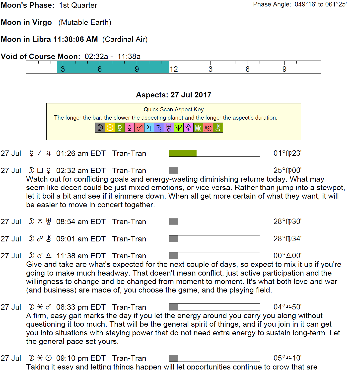 The following aspects (major only) and positions are at noon (EDT) on July 27th: