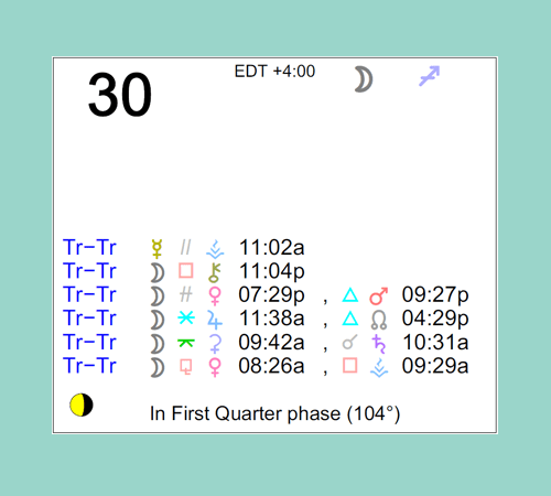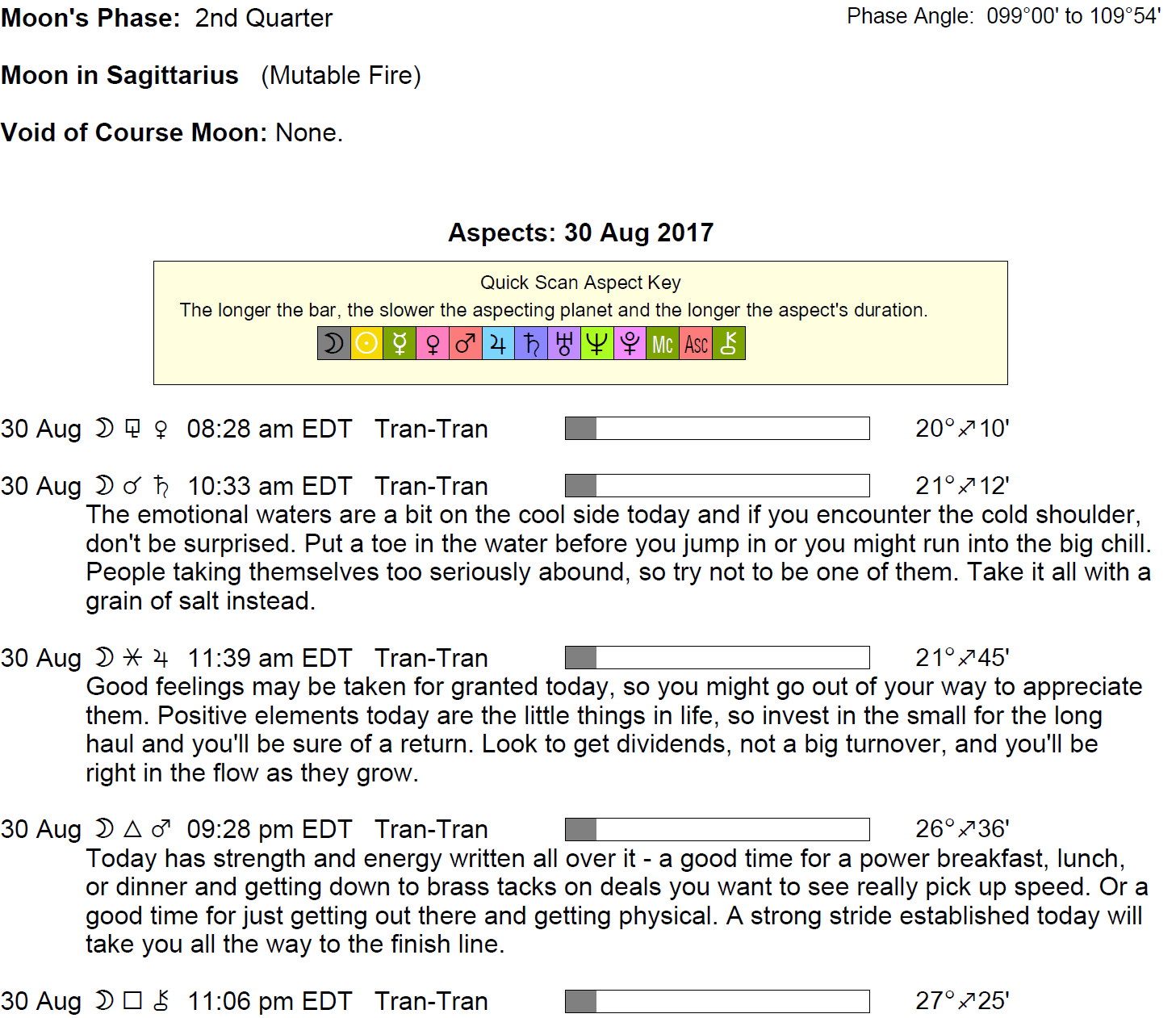 The following aspects (major only) and positions are at noon (EDT) on August 30th:
