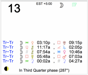 Explore the astrology of the day with zodiac sign horoscopes, daily transits, Moon phases, and planetary signs and aspects. Today's Moon: The Moon is in Cancer until 12:33 PM, from which … [Read more...]