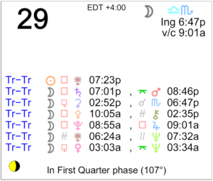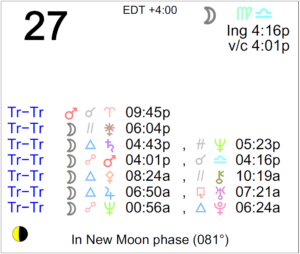 Today's Moon: The Moon is in Leo until 1:04 PM, after which the Moon transits Virgo. The void Moon period continues until 1:04 PM today (since 1:34 AM yesterday - a longer void period than … [Read more...]