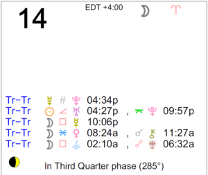 Today's Moon: The Moon is in Aries. There is no void Moon period today. The Moon is waning and in its Last Quarter phase. The Last Quarter Moon occurred yesterday, and the New Moon … [Read more...]