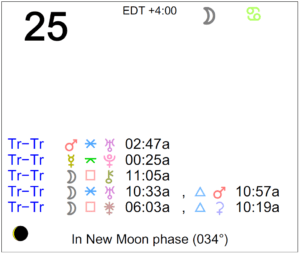 Today's Moon: The Moon is in Cancer. There is no void Moon period today. The Moon is waxing and in its New phase. The New Moon occurred on the 22nd in the sign of Gemini, and the First … [Read more...]