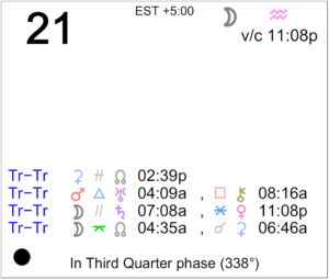 Today's Moon: The Moon is in Aquarius. The Moon is void all day (this happens rather infrequently). The Moon is waning and in its Waning Crescent phase. The Last Quarter Moon occurred on … [Read more...]
