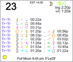 Summary: The Moon is in Leo until 10:45 PM. The Moon is void until 10:45 PM (since yesterday at 9:51 PM). The Moon is in Virgo from 10:45 PM forward (until Thursday, … [Read more...]