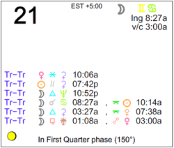 Summary: The Moon is in Gemini all day. The Moon is waxing and in its First Quarter phase until 5:52 AM / the Moon is waxing and in its Waxing Gibbous phase from 5:52 AM forward. A First … [Read more...]