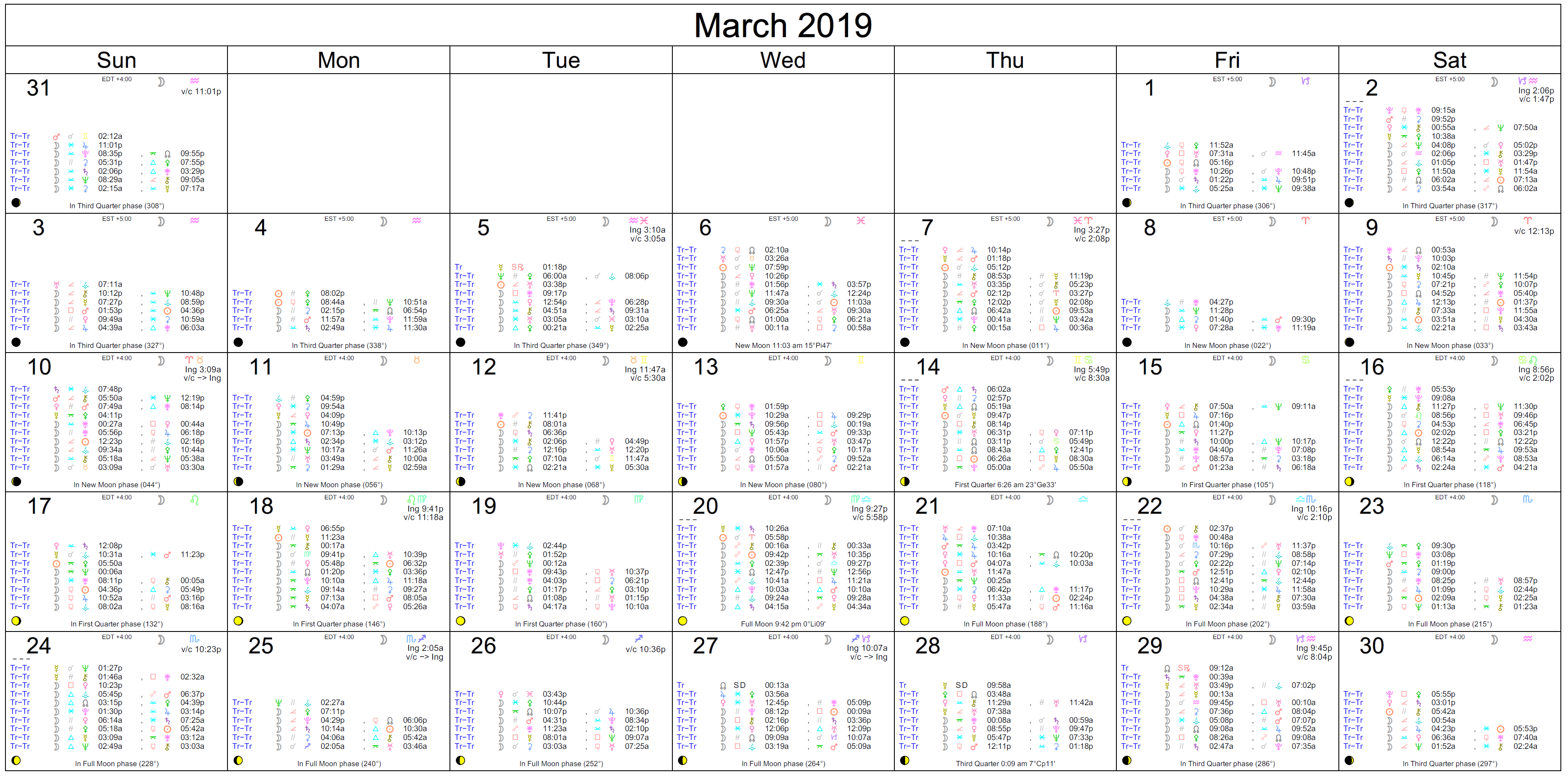 March 2019 Monthly Horoscope Summary for Libra: March is strong for making significant adjustments, getting your daily routines and self-care systems into order, and doing editing or revision in your work, dear Libra. Fortunately, you have plenty of support for these activities! Attempting to push ahead new initiatives is not advised for now, however, as there can also be some complications involved, although they’re nothing you can’t handle. This is due to Mercury’s retrograde from the 5-28 in your work and health sector that requires some need to redo, refine, and reconsider matters in these life departments.