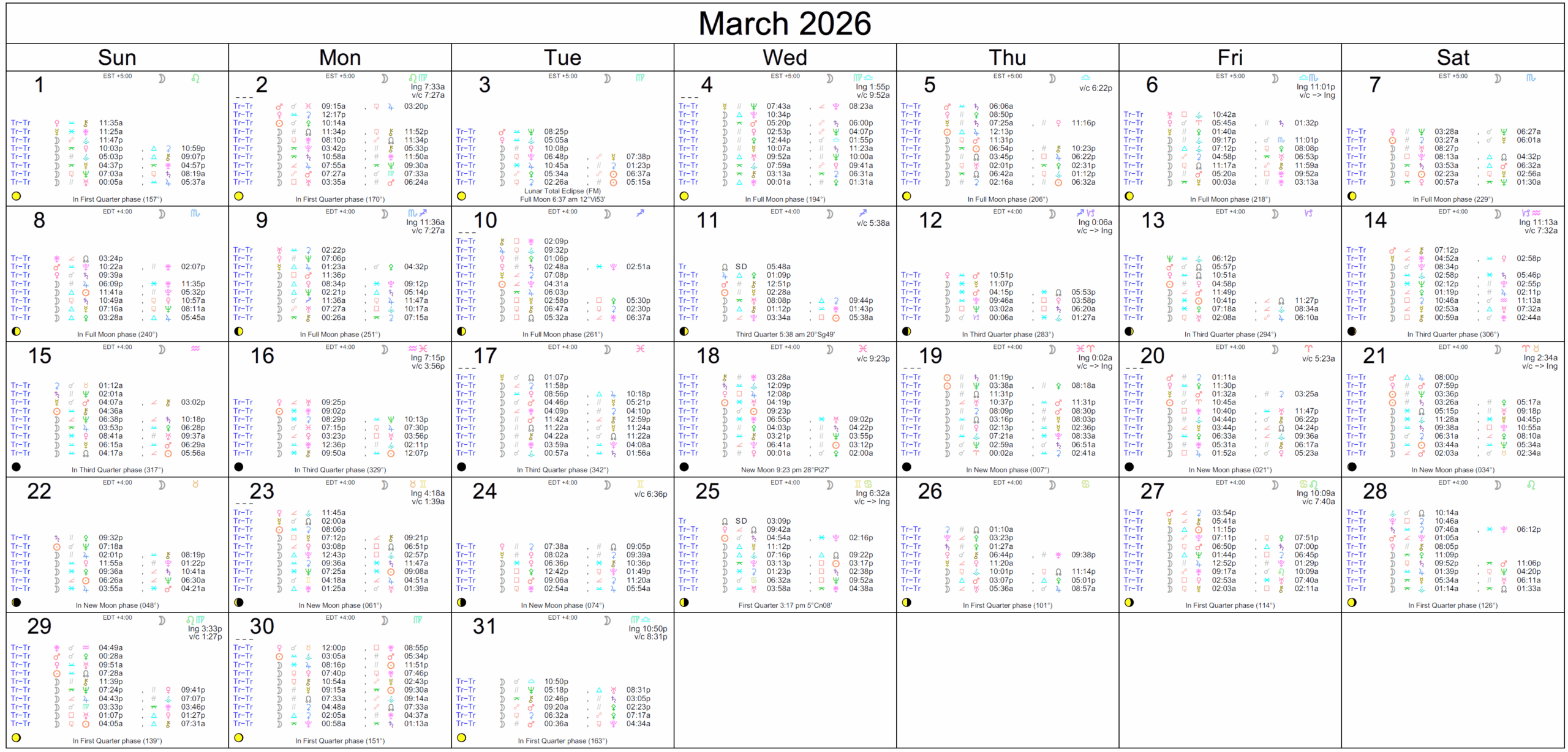 March is a strong time to see old problems or a past matter in a very revealing new light, and this energy is most potent from the 4th to the 8th. There can be significant insight into the past or into your innermost feelings and subconscious mind. Your ability to support or advise others is considerable now.