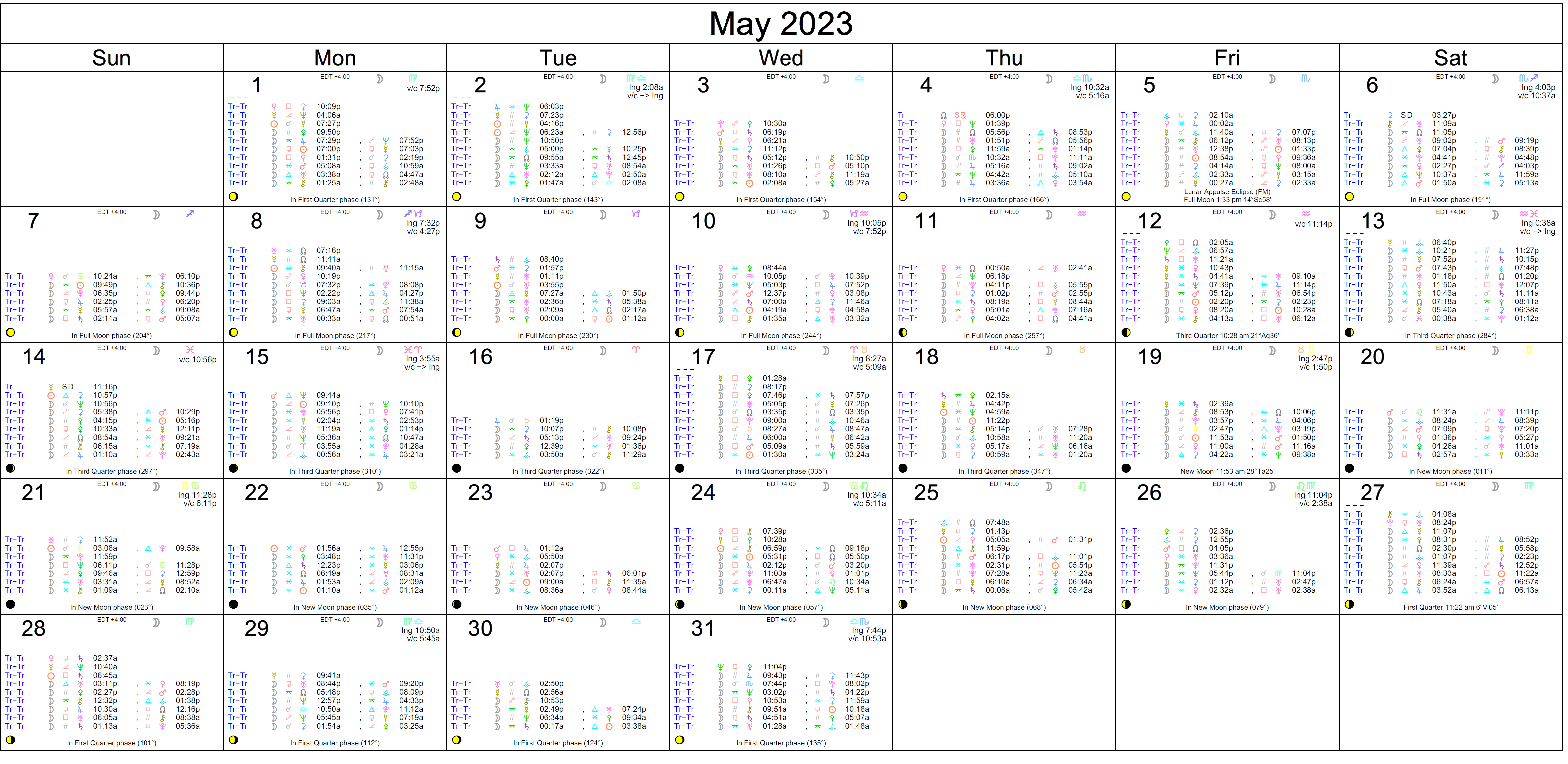Consider, too, that with a Lunar Eclipse on the 5th muddying the waters, you’re better off taking more time to refine things than you are for pushing something ahead. It’s best to avoid expecting things to transpire exactly as expected and avoid taking things at face value only in the first half of May.