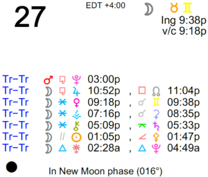 The Moon is in Taurus until 9:38 PM, after which the Moon is in Gemini. The Moon is void from 9:18 PM until 9:38 PM. The Moon is waxing and in its New phase. The New Moon … [Read more...]