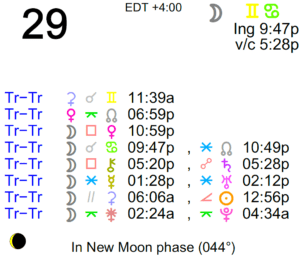 The Moon is in Gemini until 9:47 PM, after which the Moon is in Cancer. The Moon is waxing and in its New phase until 12:58 PM, after which the Moon is waxing and in its Waxing … [Read more...]