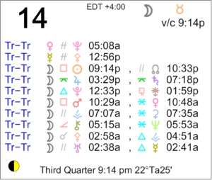 The Moon is in Taurus. The Moon is void from 9:14 PM forward (until 10:05 AM tomorrow). The Moon is waning and in its Waning Gibbous phase until 9:14 PM, after which the Moon … [Read more...]