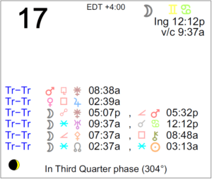 The Moon is in Gemini until 12:12 PM, after which the Moon is in Cancer. The Moon is void of course from 9:37 AM to 12:12 PM. The Moon is waning and in its Last Quarter … [Read more...]