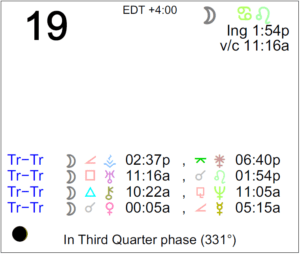 The Moon is in Cancer until 1:54 PM, after which the Moon is in Leo. The Moon is waning and in its Waning Crescent phase. The Last Quarter Moon occurred on the 14th, and the … [Read more...]