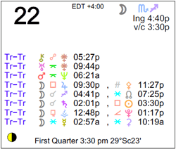 Summary: . The Moon is in Scorpio until 4:40 PM. The Moon is void from 3:30 PM to 4:40 PM. The Moon is in Sagittarius from 4:40 PM forward (until Tuesday, August 25th, at 12:21 … [Read more...]