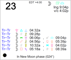 The Moon is in Virgo until 9:04 PM, after which the Moon is in Libra. The Moon is waxing and in its New phase. The New Moon (Solar Eclipse) occurred on the 21st in the sign of … [Read more...]
