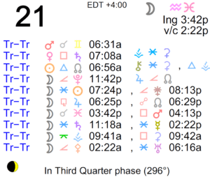 The Moon is in Aquarius until 3:42 PM, after which the Moon is in Pisces. The Moon is void from 2:22 PM to 3:42 PM. The Moon is waning and in its Last Quarter phase. The … [Read more...]