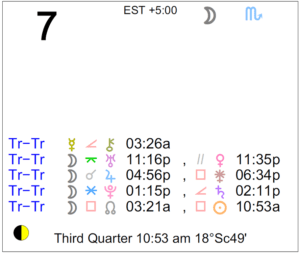 The Moon is in Scorpio. The Moon is waning and in its Waning Gibbous phase until 10:53 AM, after which the Moon is in its Last Quarter phase. The Last Quarter Moon occurs today at 10:53 AM, and … [Read more...]
