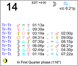 The Moon is in Scorpio all day (until Friday, July 15th, at 5:13 AM).The Moon is void from 6:21 PM forward (until 5:13 AM tomorrow).The Moon is waxing and in its First Quarter phase.A … [Read more...]
