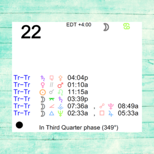The Moon is in Cancer. The Moon is waning and in its Waning Crescent/Balsamic phase. The Last Quarter Moon occurred on the 16th, and the New Moon will occur in Leo … [Read more...]