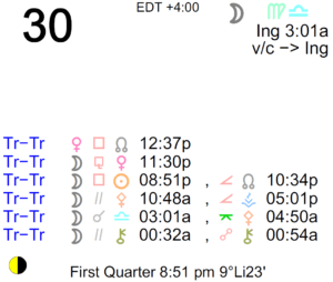 The Moon is in Virgo until 3:01 AM, after which the Moon is in Libra. The Moon is void until 3:01 AM (since 4:34 PM yesterday). The Moon is waxing and in its Waxing Crescent … [Read more...]
