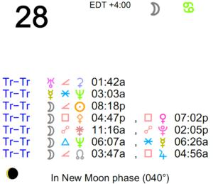 The Moon is in Cancer. The Moon is waxing and in its New phase until 8:20 PM, after which the Moon is in its Waxing Crescent phase. The New Moon occurred on the 25th in the … [Read more...]