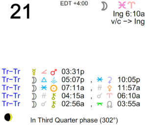 The Moon is in Pisces until 6:10 AM, after which the Moon is in Aries. The Moon is void until 6:10 AM (since last night at 11:39 PM) The Moon is waning and in its Last Quarter … [Read more...]