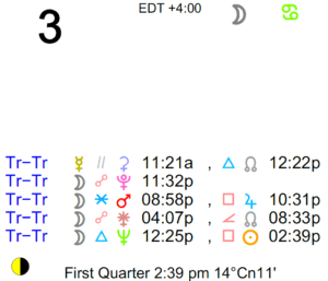 The Moon is in Cancer all day. The Moon is waxing and in its Waxing Crescent phase until 2:39 PM, after which the Moon is waxing and in its First Quarter Moon phase. The First … [Read more...]