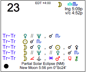 Summary: The Solar Eclipse today is a partial eclipse, but it's also a very creative one as it occurs in conjunction with Venus and in creative quintile to Pluto and Jupiter. It's also … [Read more...]