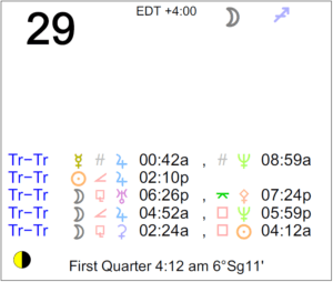 The Moon is in Sagittarius. The Moon is waxing and in its Waxing Crescent phase until 4:12 AM, after which the Moon is in its First Quarter phase. The First Quarter Moon … [Read more...]