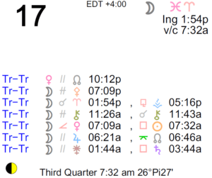 The Moon is in Pisces until 1:54 PM, after which the Moon is in Aries. The Moon is void from 7:32 AM to 1:54 PM. The Moon is waning and its Waning Gibbous phase until 7:32 AM, … [Read more...]