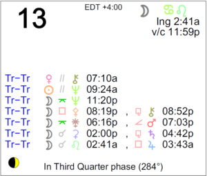 The Moon is in Cancer until 2:41 AM, after which the Moon is in Leo. The Moon is void from 12:00 AM to 2:41 AM. The Moon is waning and in its Last Quarter phase. The Last … [Read more...]