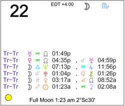 Summary: The Moon is in Scorpio all day (until Sunday, April 24th, at 8:46 AM). The Moon is waxing and in its Waxing Gibbous phase until 1:23 AM / the Moon is waning and in its … [Read more...]